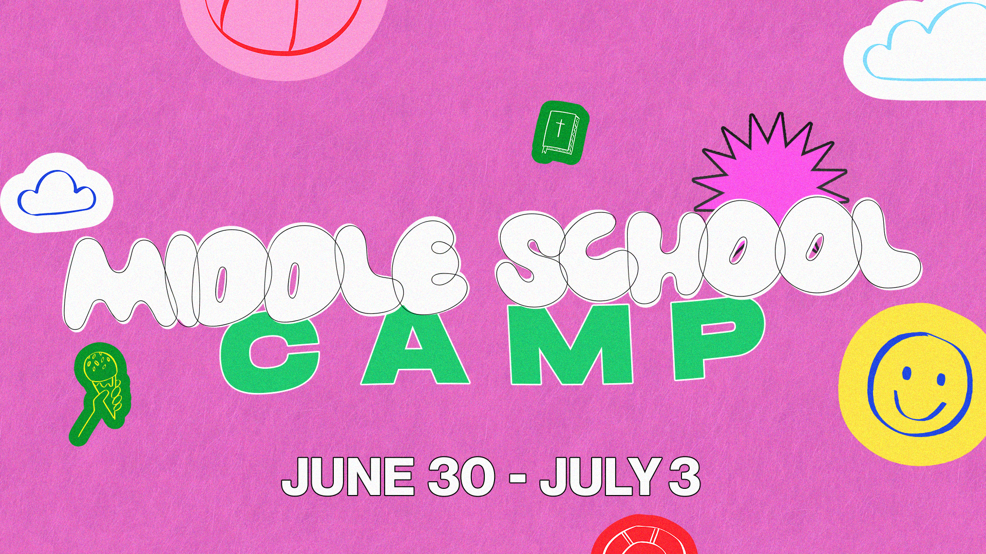 We are so excited to introduce Middle School Camp this summer, happening Tuesday, June 30 through Friday, July 3! This camp is designed especially for students who have just aged out of kids camp and are not quite ready for a full youth camp experience yet. Camp is a fun, encouraging environment where students can grow in their faith, build friendships, and feel confident being themselves. This camp is for students who have completed 6th–8th grade for Fall 2026. The cost is $205 for early registration, which includes a camp t-shirt. After May 10, the price increases to $215.